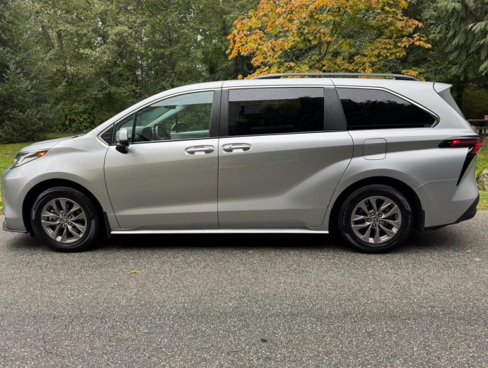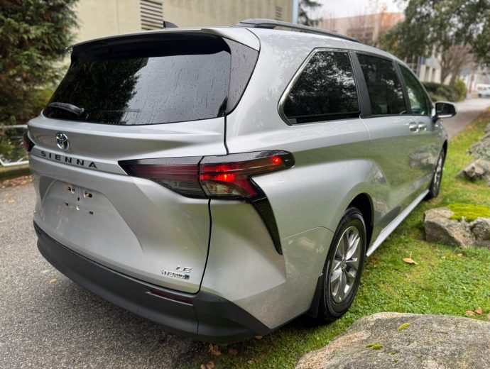 The 2023 Toyota Sienna LE AWD is an 8-passenger minivan with a hybrid powertrain, and all-wheel drive.